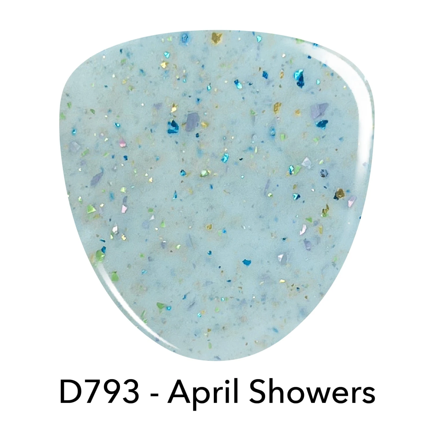 April Showers has a baby blue base with cobalt blue, gold, green and purple flake.